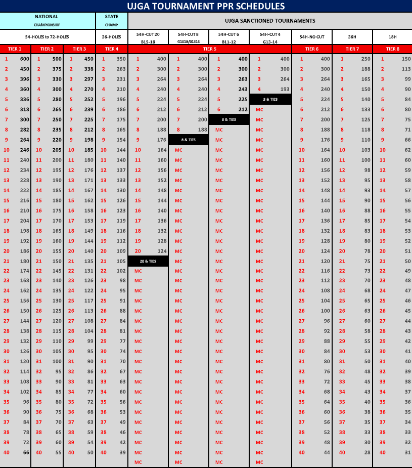 - PLAYER PERFORMANCE RANKING POINTS SCHEDULE